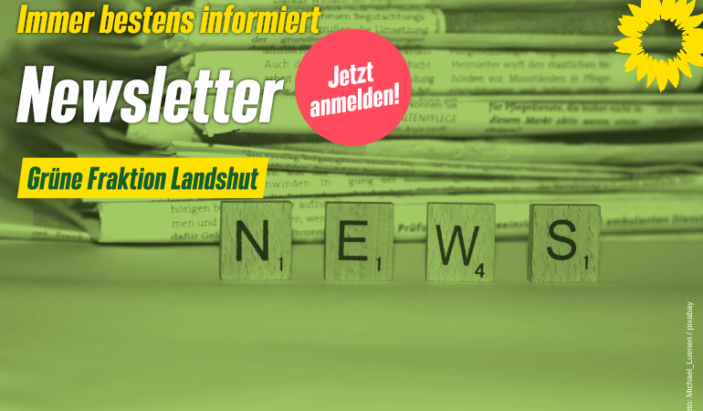 Immer auf dem Laufenden bleiben. Abonnieren Sie unseren Newsletter und bleiben Sie auf dem Laufenden. Der Newsletter erscheint regelmäßig einmal im Monat und informiert über aktuelle Themen im Landshuter Stadtrat und die Schwerpunkte der Arbeit der GRÜNEN Stadtratsfraktion. Hier geht`s zur Anmeldung.